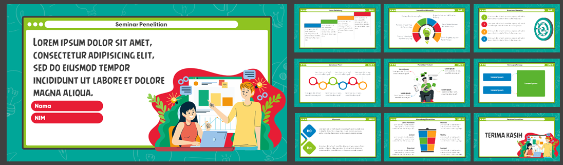 Griya Presentasi - Ini adalah contoh template presentasi Seminar Proposal menarik dengan memasukkan unsur tampilan windows di laptop yang bisa digunakan berbagai jurusan. Template ini slidenya editable, jadi kamu bisa mengedit dan menyesuaikan dengan kebutuhan presentasimmu.